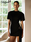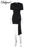 Dulzura O-Neck Short Sleeves Lace Up Bodycon Metal Button Mini Dress Solid Casual Elegant Short Dress Club Streetwear Outfit